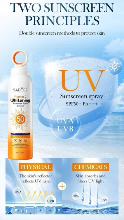 اسپری ضد آفتاب سادور فاقد چربی و احساس سنگی کاملا بی رنگ بدون نیاز به دخالت دست برای پخش کردن با حفاظت بالا بشدت سبک و در برابر آب و تعریق مقاوم است و برای استفاده در فعالیتهای ورزشی و تفریحی در فضای باز مناسب است. این اسپریحاوی آنتیاکسیدانهای قوی است که از پوست در برابر رادیکالهای آزاد محافظت میکنند و به جلوگیری از پیری زودرس پوست کمک میکنند.